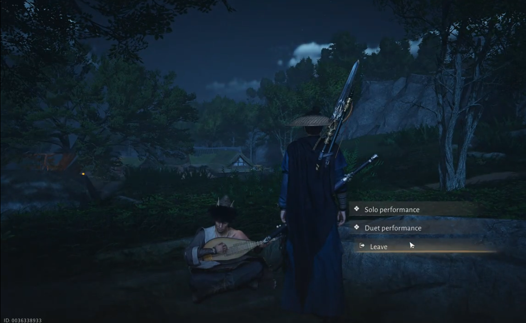 Approach Hu Ma and initiate a conversation. He will offer you the chance to participate in his musical performance.