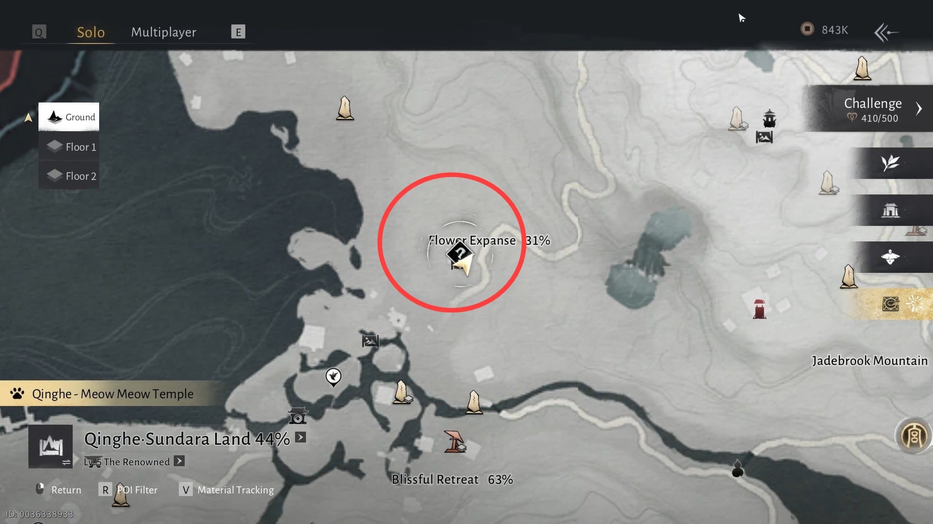 Chang Qing sits in the Sundara Land's Flower Expanse area, with his instrument. Interact with him to start a mini game.