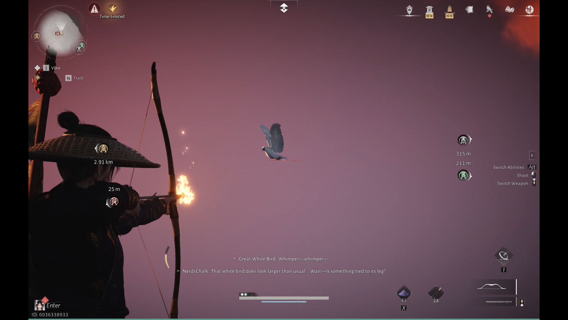 Shoot down the bird circling overhead and collect the 'Of' Tag.