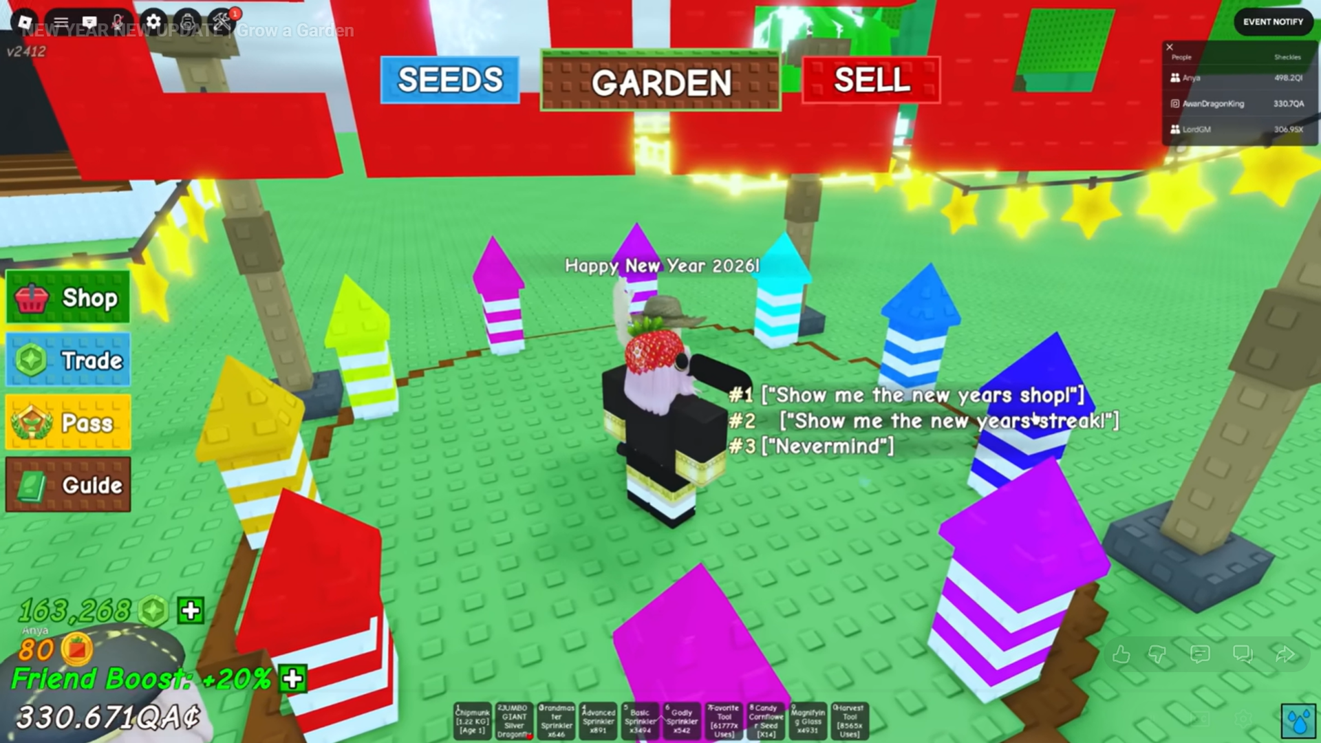 The New Year Event Shop in Grow A Garden focuses heavily on event-exclusive pets and collectibles rather than permanent income boosts. If you want lasting value, prioritize New Year’s Eggs and Sparkle Slice first, then spend leftovers on decorations before the event ends.
