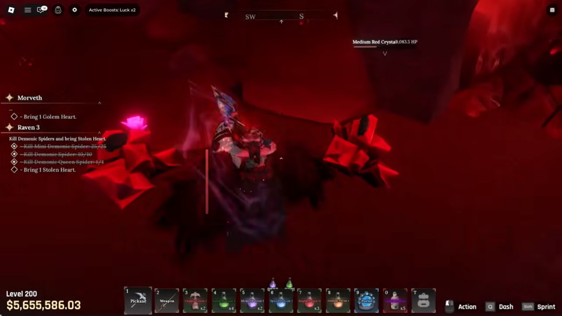 - Unlock Red Cave → enter Crimson Depths → mine red crystals