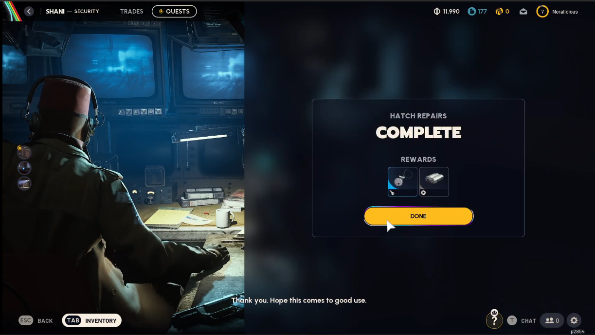Once the Hatch is repaired, you’ll receive an on-screen confirmation, and the quest will update as completed. Return to the Security Room and claim you rewards.