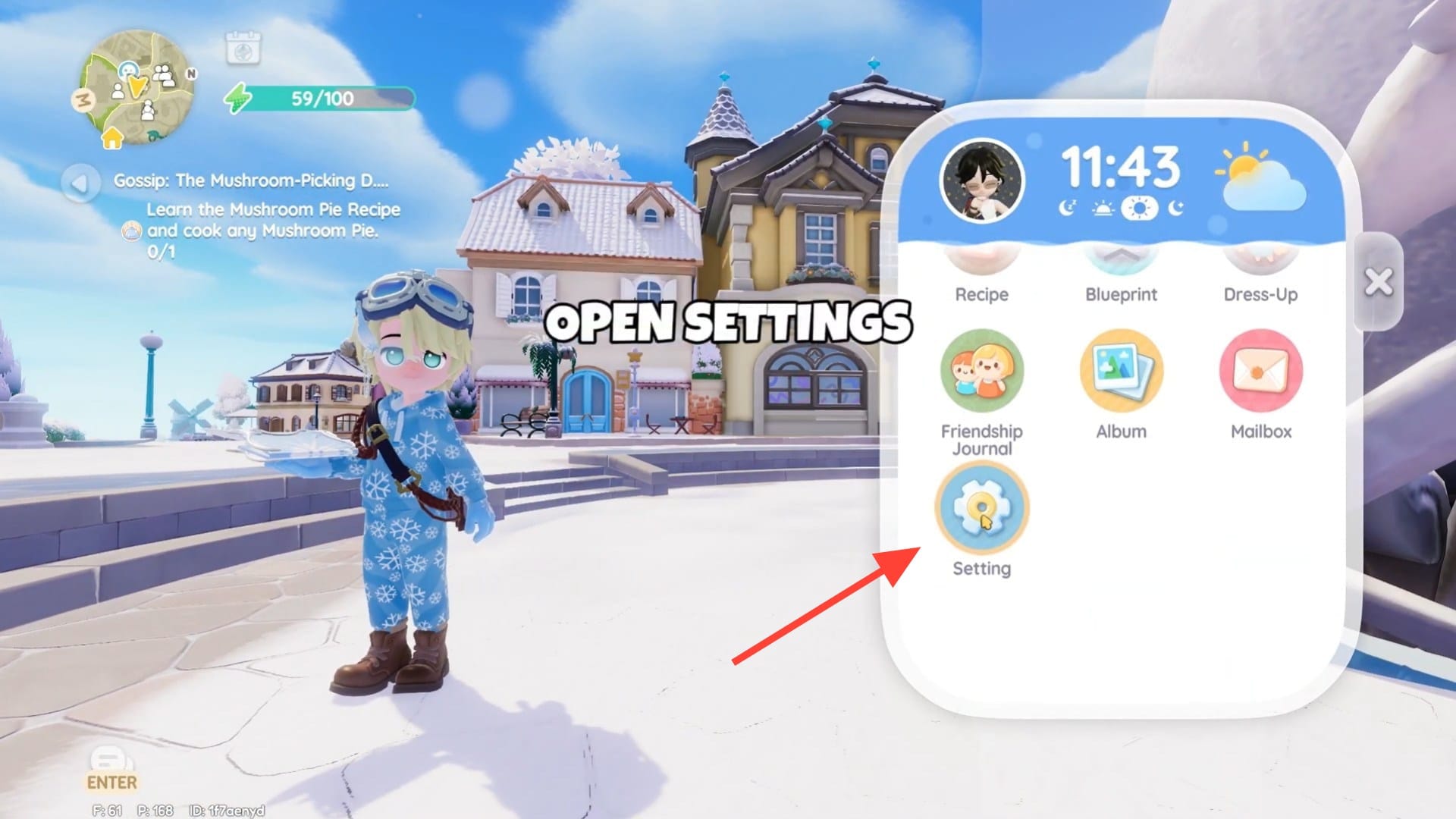 Launch Heartopia and stay on the main game screen. Tap the tab icon to open the system menu.