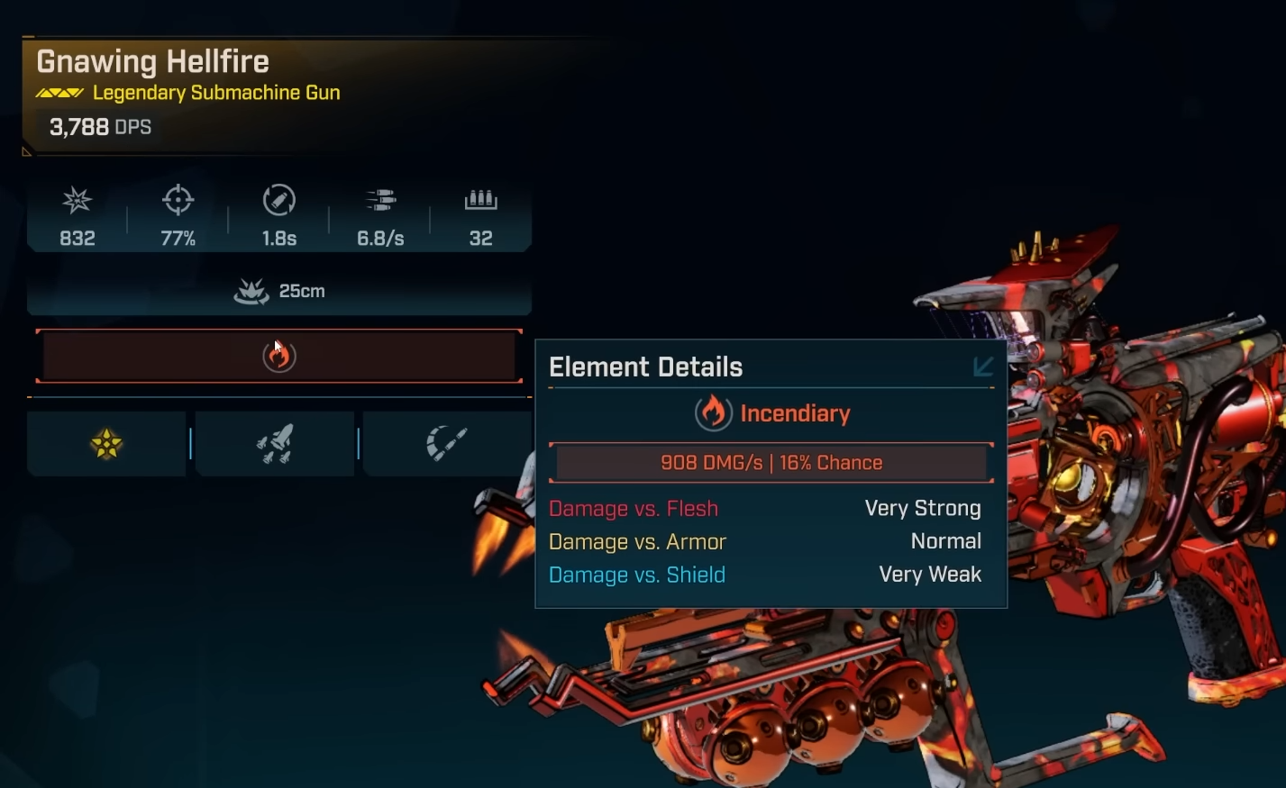 - The Hellfire SMG is a legendary weapon manufactured by Ripper, focusing on incendiary damage.