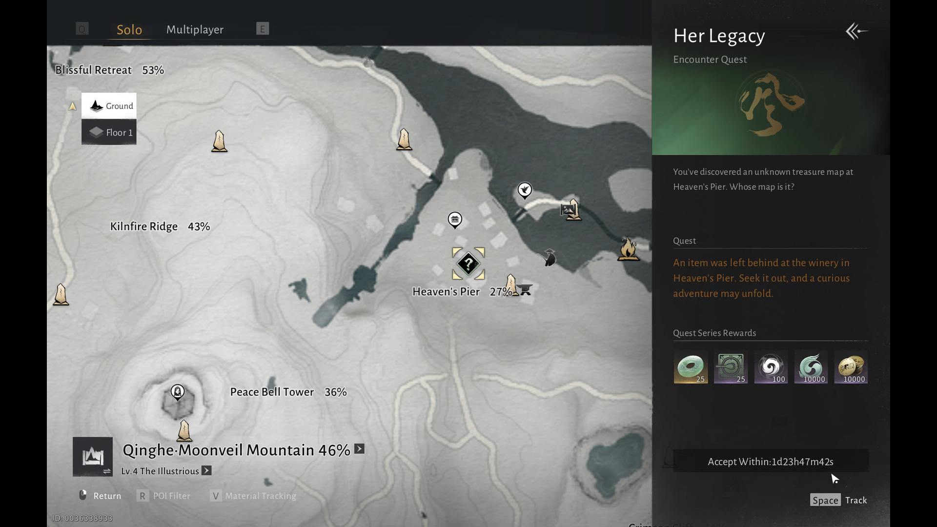The quest “Her Legacy” is an Encounter-type side quest unlocked after Chapter 1. You start it in the region Heaven’s Pier (Qinghe) by interacting with items on shelves in the brewery area.