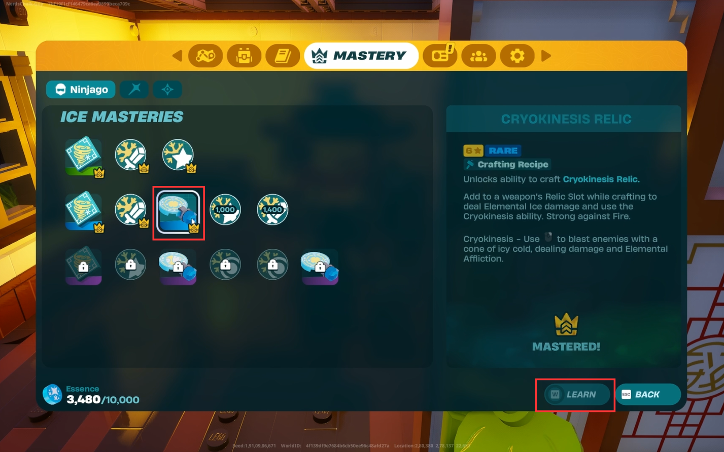 Completing Hey, Cool Relics! unlocks the powerful Cryokinesis Relic, expanding your Ice-based combat options in Fortnite LEGO Ninjago. The flexible resource slots make this relic accessible even if your inventory is limited, making it an efficient upgrade early in your mastery progression.