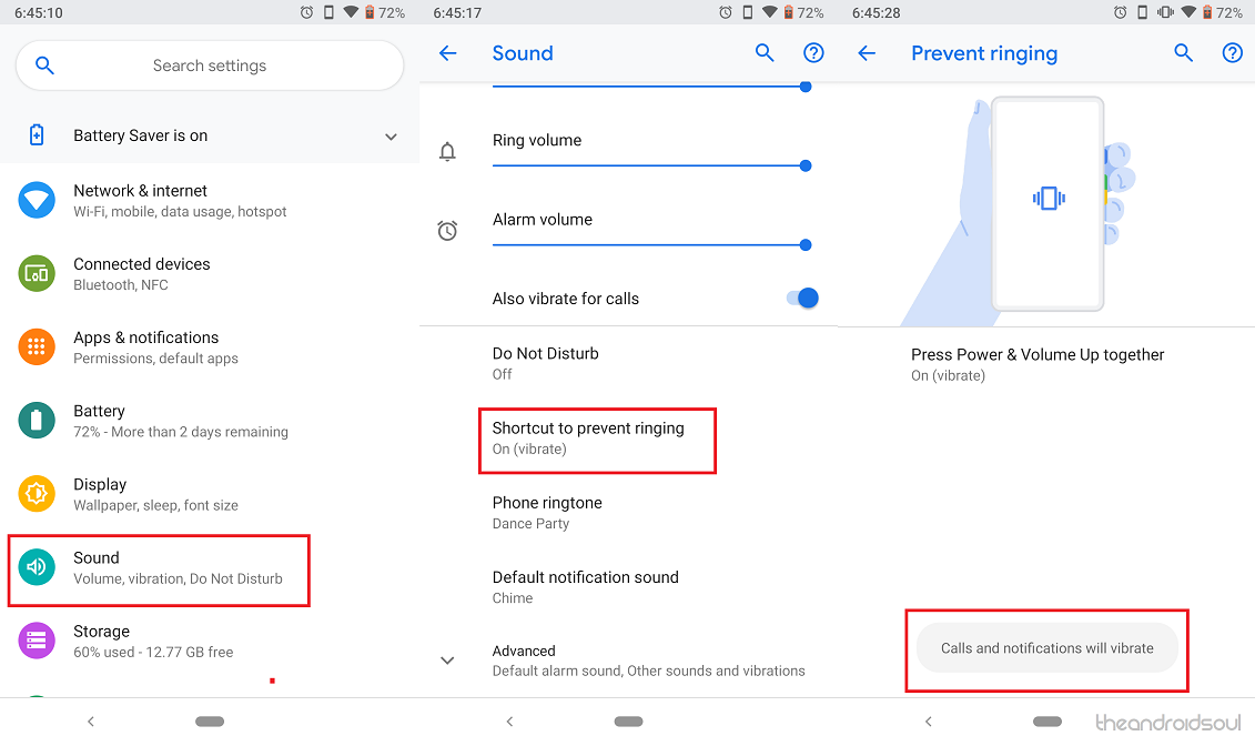 Using the Prevent Ringing feature of Android 9 Pie, you can easily use the Power and Volume Up button to silent your ringing phone. Although the feature does not work when the screen is turned off like the OnePlus Alert Slider, it is quite useful in a professional or private setting where you need to silent a phone call right away.