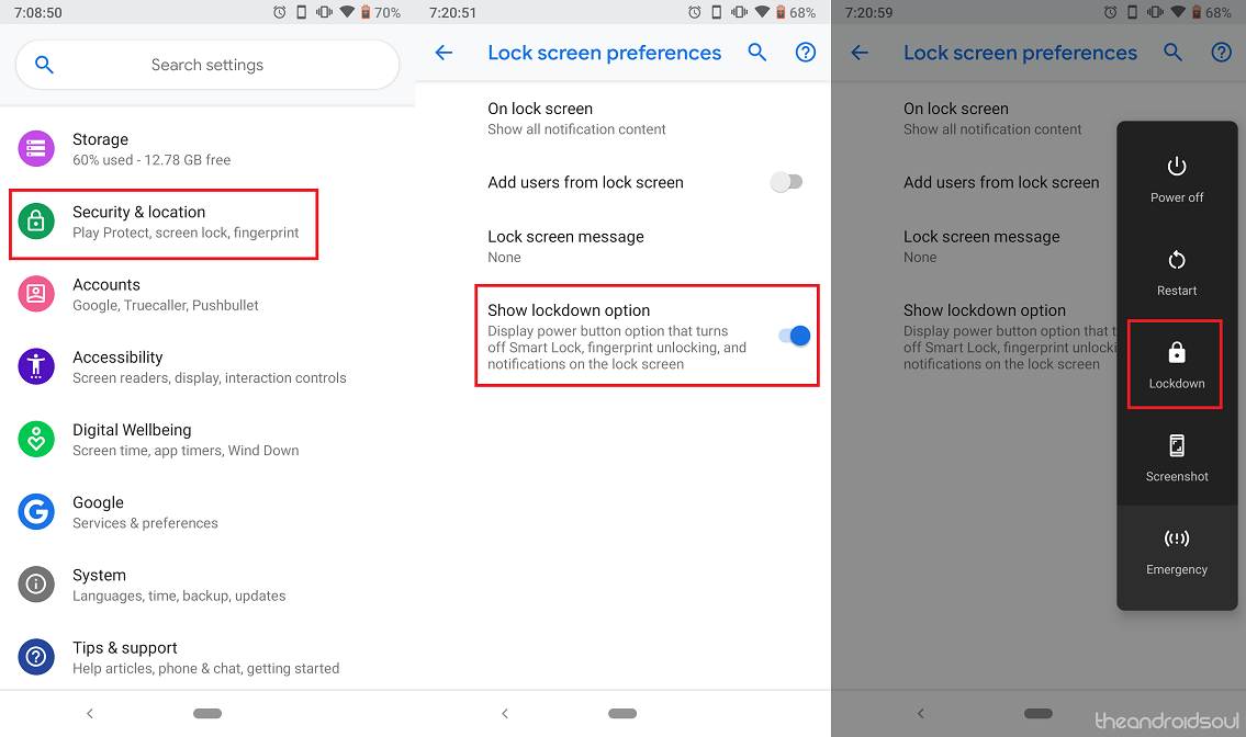 Once the Lockdown mode is activated from the Power menu, it automatically disables the fingerprint scanner of the device, turns off facial recognition unlock feature, and also hides all of the notifications that are present on the lock screen. Once activated, the Lockdown button is only a press away, which makes it all the more convenient.