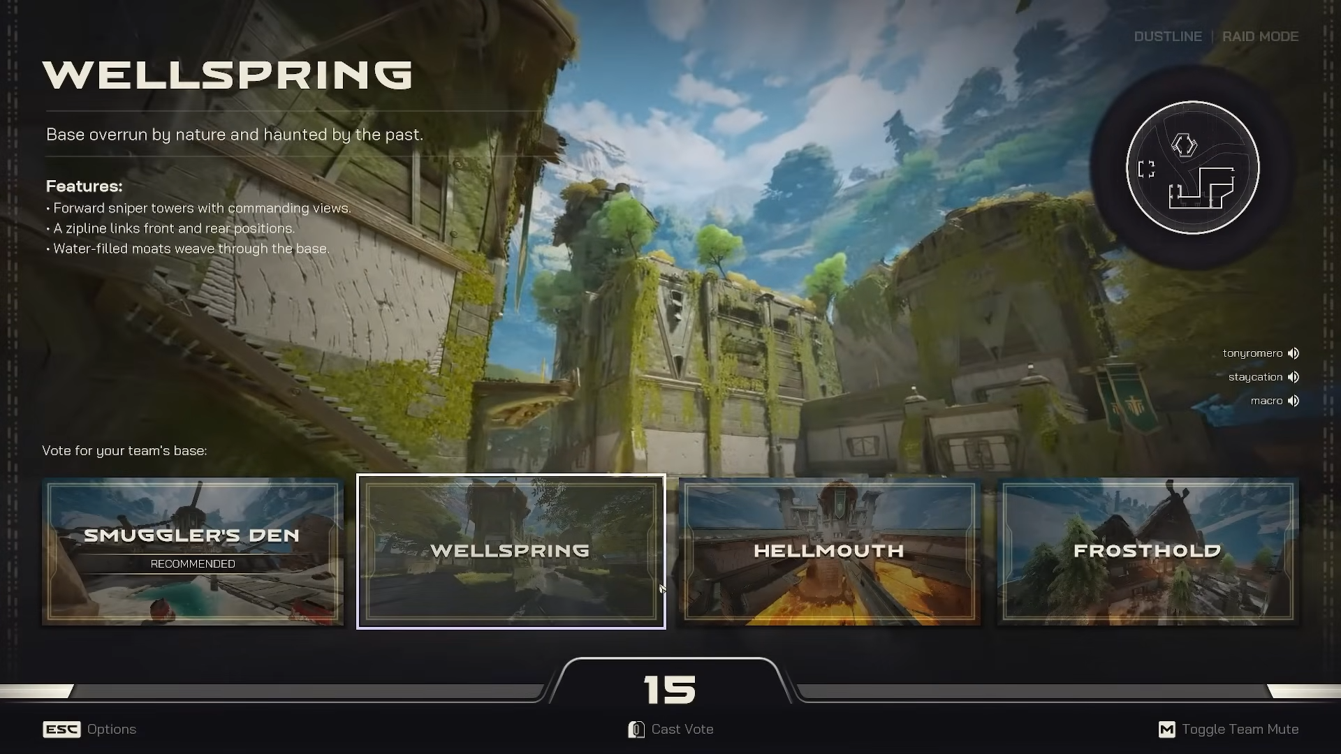 After character selection, both teams vote on four available bases. Your chosen base becomes your defensive stronghold and influences your tactical positioning.