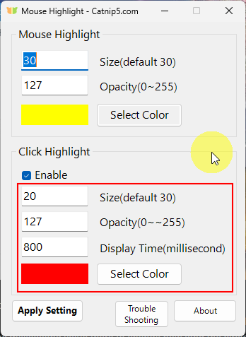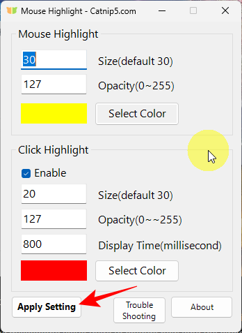 And that’s how you can customize and use Mouse Highlighter to highlight your mouse clicks on your PC.