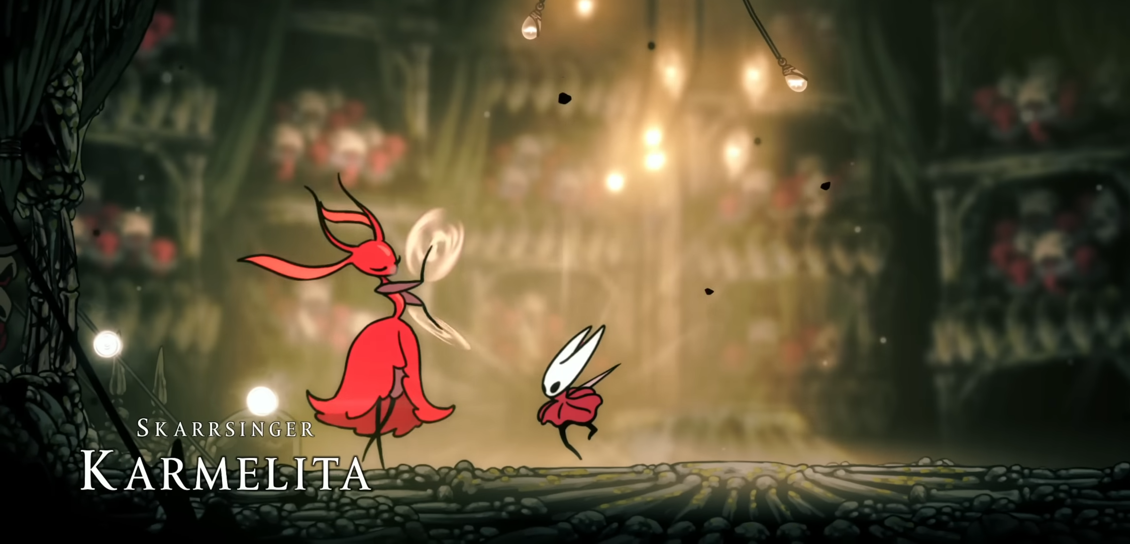 Fight strategy: Karmelita uses her voice as a weapon, unleashing wide area soundwaves that punish poor positioning. Watch her body language to predict when sound bursts will fire. Stick close between attacks to land strikes, but retreat quickly when she channels longer notes.