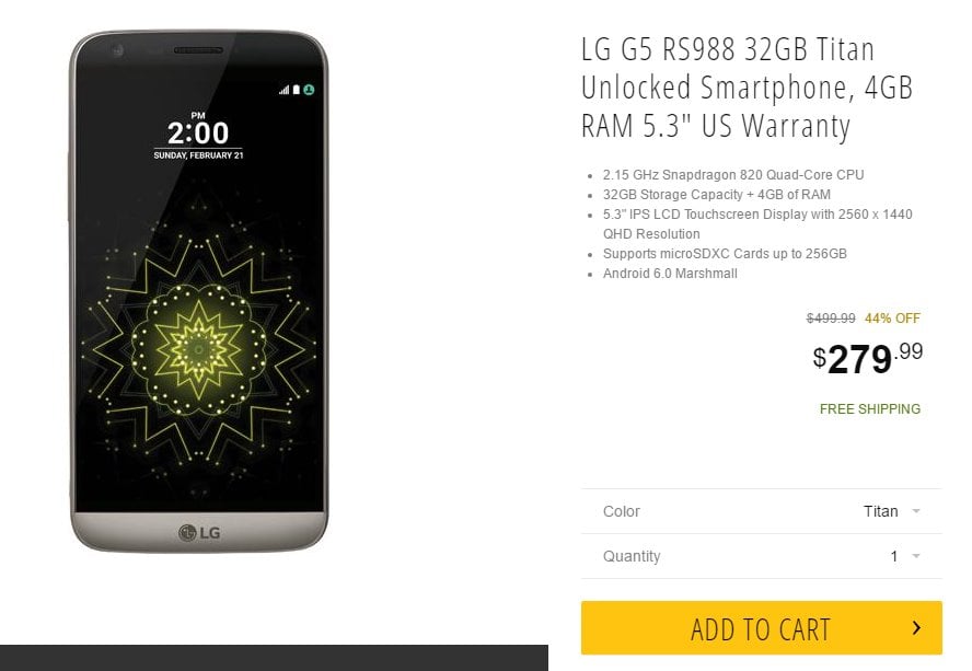 Here’s a great deal on the LG G5 smartphone, the flagship from last year. Newegg is currently selling the device for a discounted price of $279.