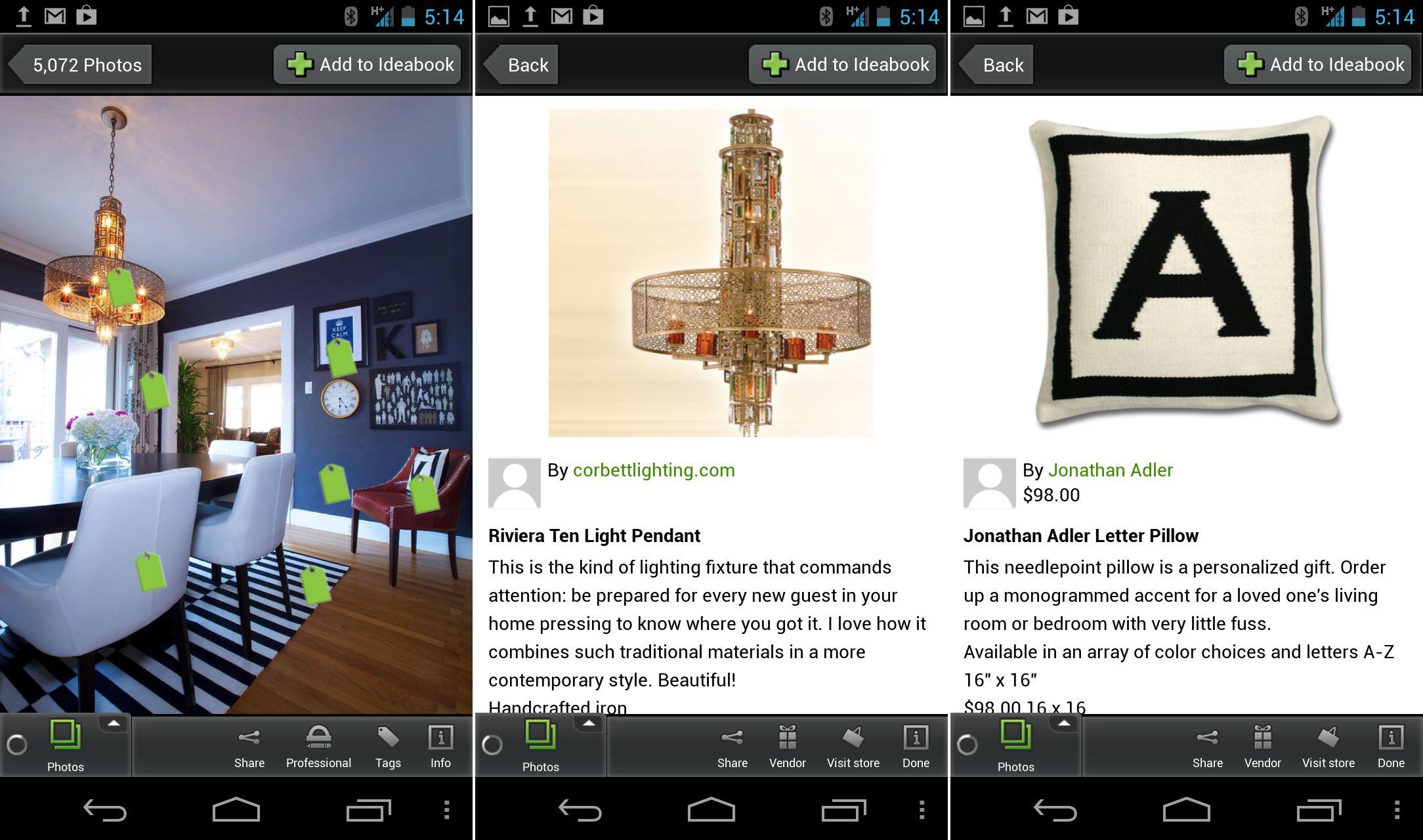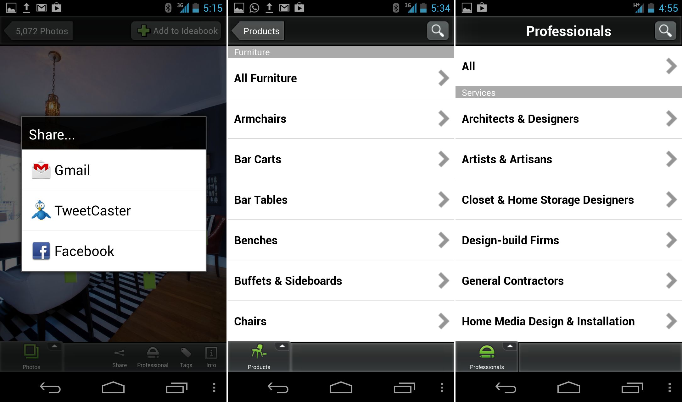 And now Houzz has released its official Android app, which lets you browse through the entire Houzz catalog of pictures, ideas, articles, lists and details of contractors and a whole lot more, right from the convenience of your Android phone or tablet.