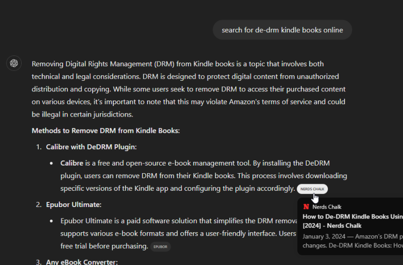 If you’re a believer in free thought and free search, chances are that ChatGPT’s moderation and content restrictions will come in the way of non-judgmental search results. Although the results are delivered eventually if you ask for it, you have to ignore all the unnecessary commentary and ramblings on why you shouldn’t be looking up certain things.