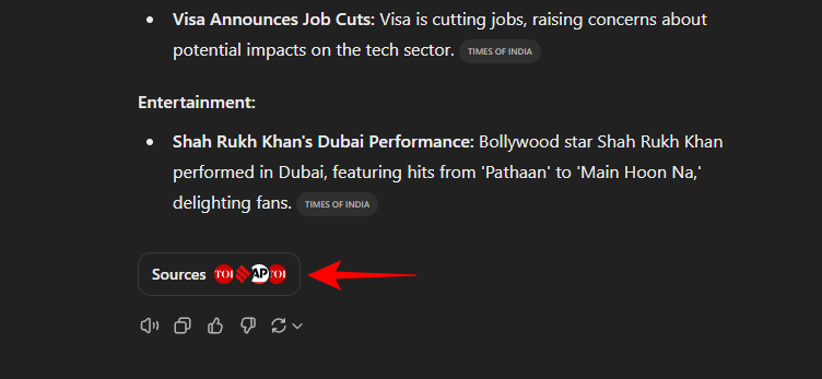 ChatGPT cites its sources next to important statements as well as at the bottom where you can click on the ‘Sources’ button to view the websites where it’s gathering information from.