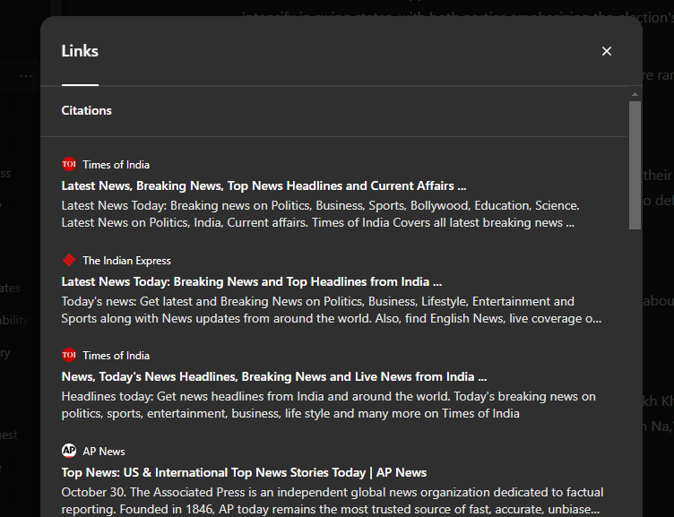 If most of its search results are coming from a single authoritative source, you’ll see that website mentioned at the top as well. Citations are also provided in the side panel if you’re on the desktop app.