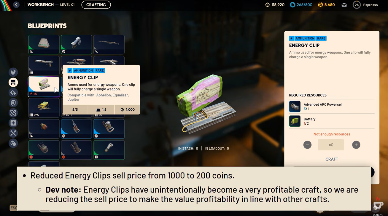 The most notable tweak is the reduced sell price for energy weapon clips. This affects farming routes and loot priorities.