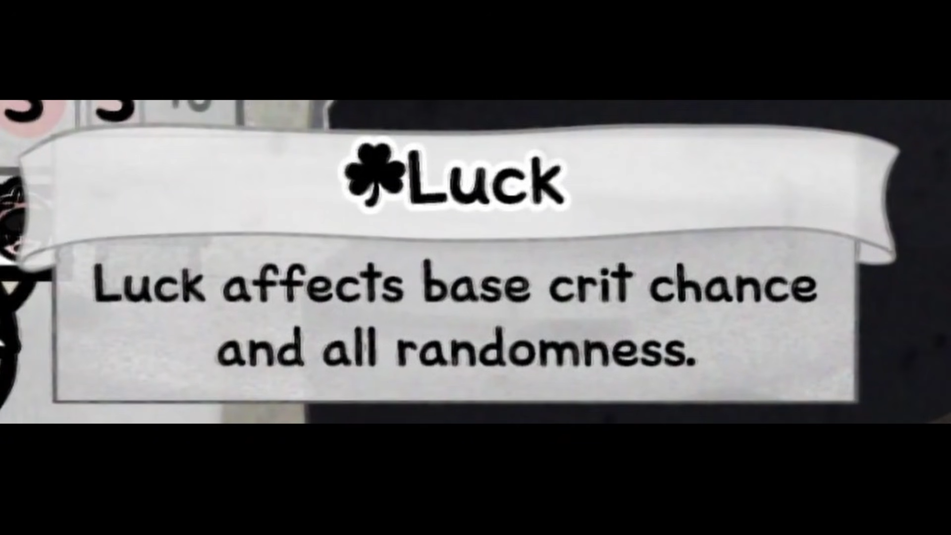 In the stat screen, Luck is described as affecting your base crit chance along with other randomness, but the precise base crit number is not exposed.