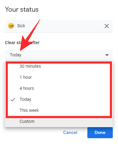 And finally, click on the dropdown under ‘Clear status after’ to select the timer.