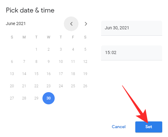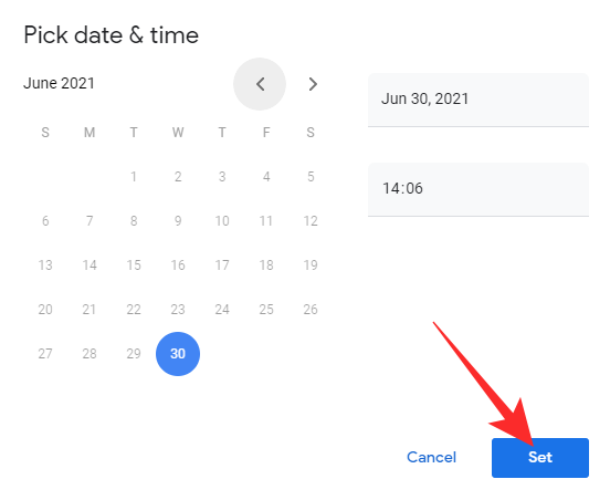 pick the time and date, and hit ‘Set.’
