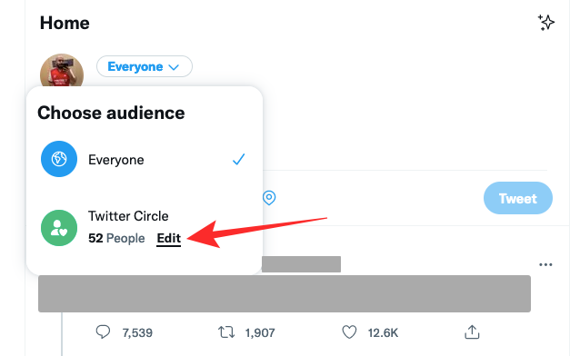 In the Choose audience menu that appears, click on Edit under “Twitter Circle”.