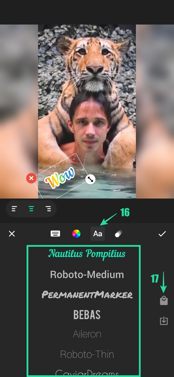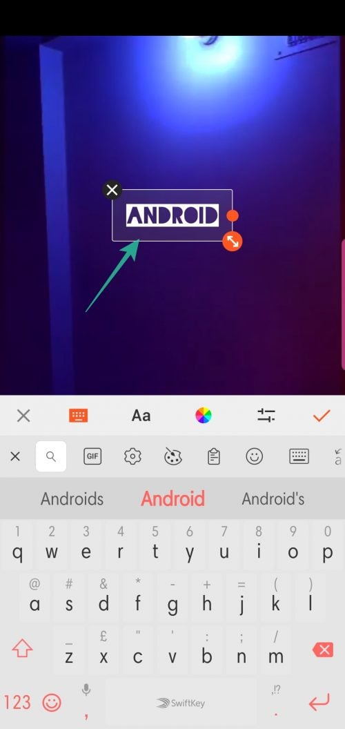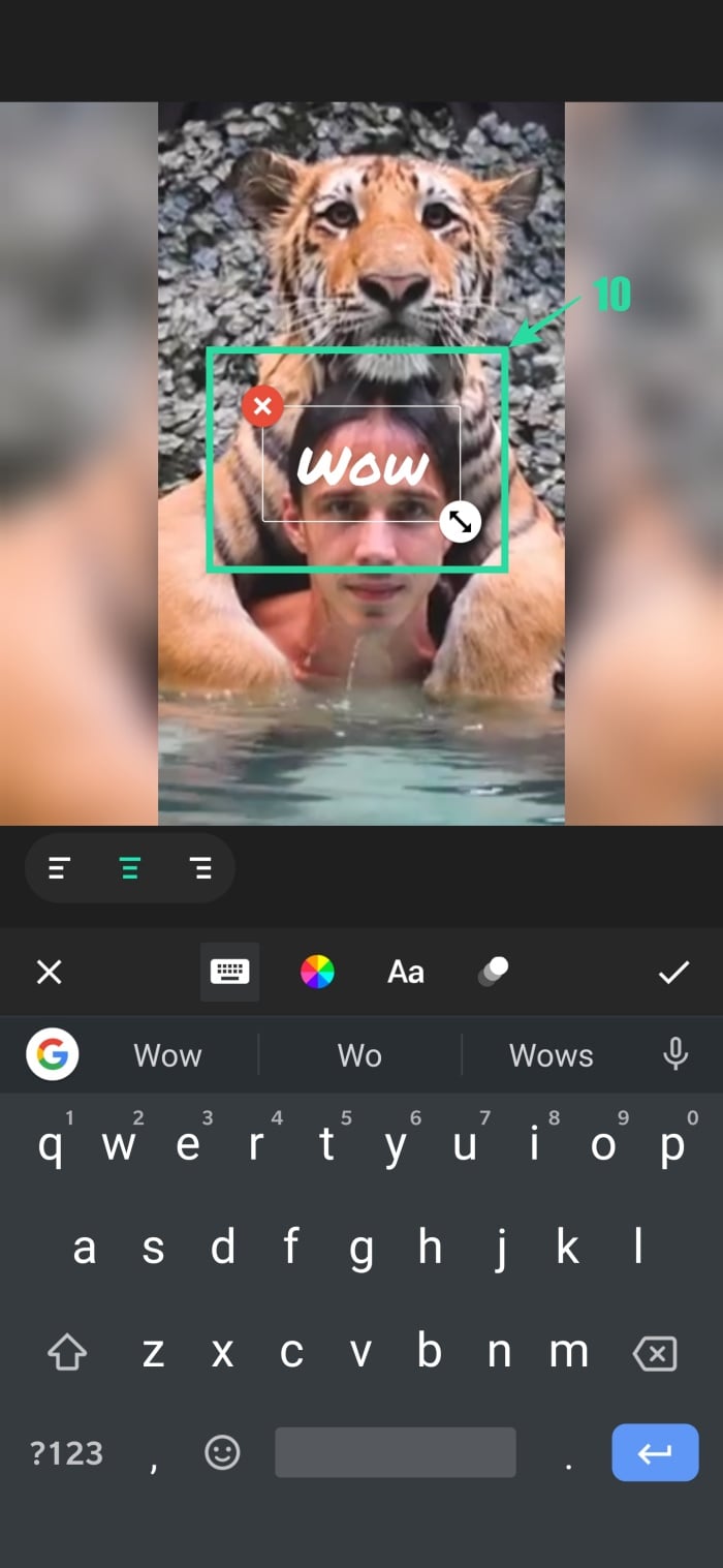 You can now enter the text you want to add to the video using the default keyboard and once you’ve created a text box, tap on the ‘T’ icon on the top right corner of the text box to make additional changes to the text.