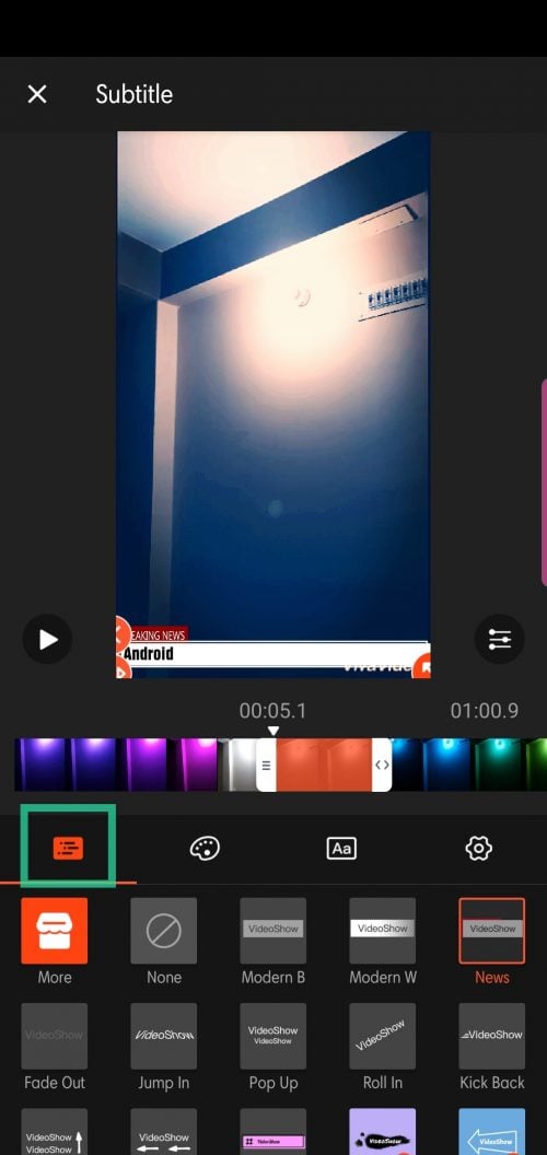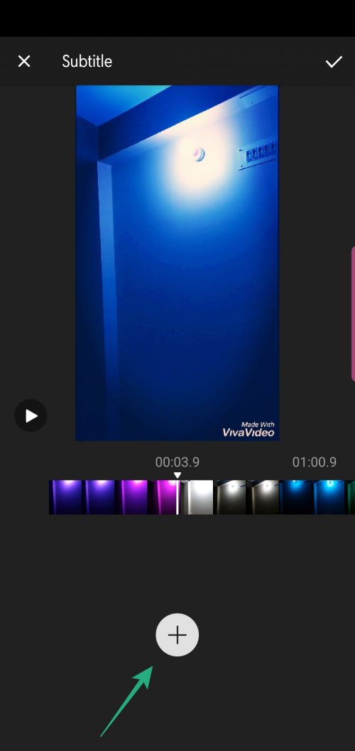 Now, inside the ‘Editor’ screen, tap on the ‘Edit’ tab, select the ‘Subtitle’ tile, select a frame you want to add text to, and then hit the ‘+’ button at the bottom.