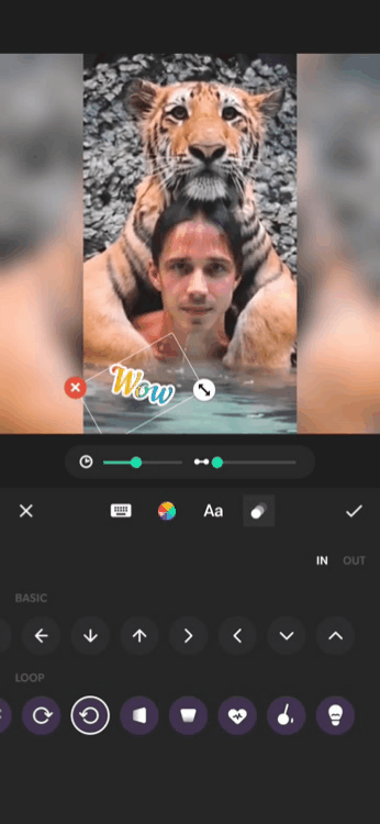 You can also create texts with different animations that will be overlaid on your video. To do that, tap on the Animations icon, select any effect from Basic or Loop to add to the text. You can also edit the speed of the animation and speed at which the text animation should loop using the icons just below the video.