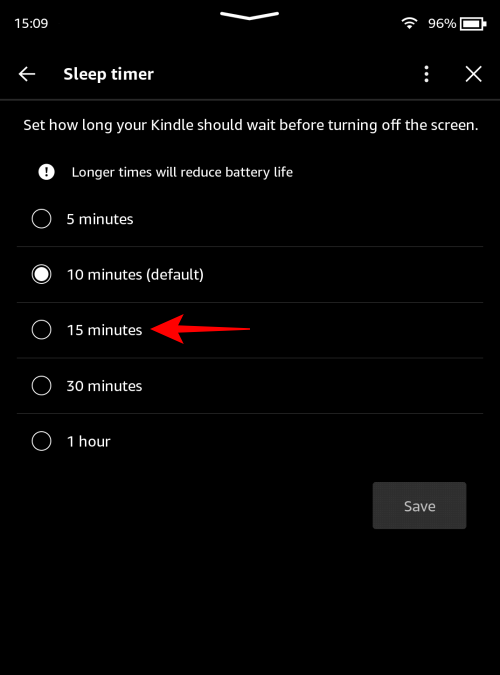 As mentioned on the page, longer screen timer setting will consume more battery life since the processor still has to be awake even if there’s no interaction with the device itself. Fortunately, this is where Kindle’s generally long and reliable battery life comes handy. So at least you won’t have to keep waking your Kindle when you’re on longer breaks. It would have been nice to have an option to ‘Never’ let the Kindle go to sleep. But perhaps we may get that in a further update.