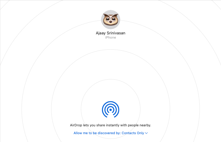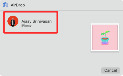 3. If the recipient has enabled Airdrop on their device, you will be able to see their name or their device name in the AirDrop window that pops up on the screen. From here, click on the device you want to share the file with.