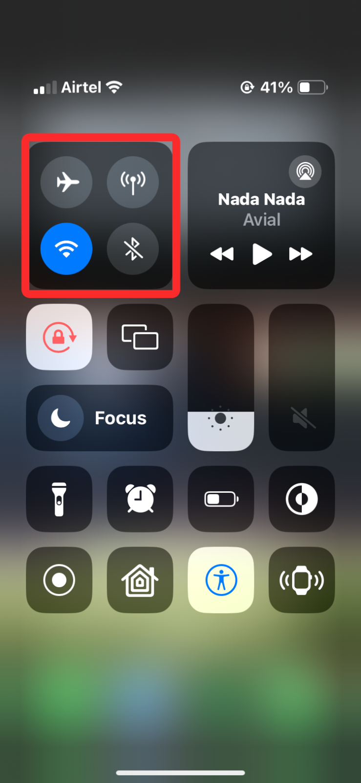 1. Launch the Control Center on your iPhone by either swiping down from the top-right corner of the screen (on iPhones with Face ID) or by swiping up from the bottom of the screen (on iPhones with Touch ID). When the Control Center pops up, press and hold any of the elements or anywhere within the Wi-Fi/Bluetooth/Airplane tile (the one that includes quick access to WiFi, Bluetooth, cellular data, and other settings) to expand it.