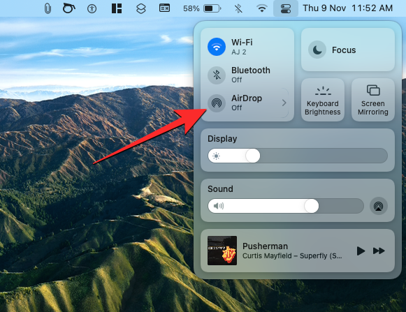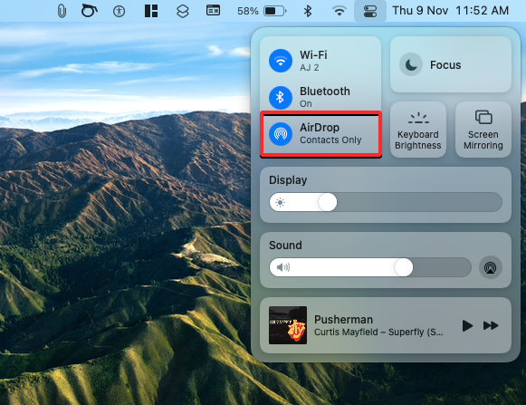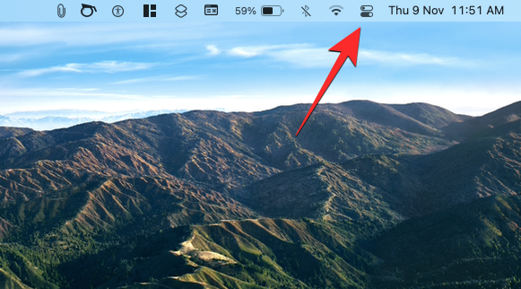 1. To enable Airdrop, click on the Control Center icon on the Menu bar.