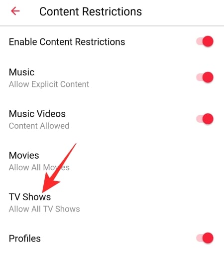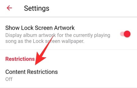 Now, to turn off explicit songs alone and surrender control for the rest, you can very easily turn off ‘Content Restrictions’ and be done with it.