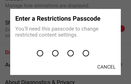 Re-enter the four-digit code again to access the ‘Content Restrictions’ section.