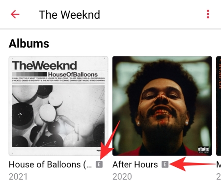 Albums that have explicit songs would also display the ‘[E]’ badge on its right.