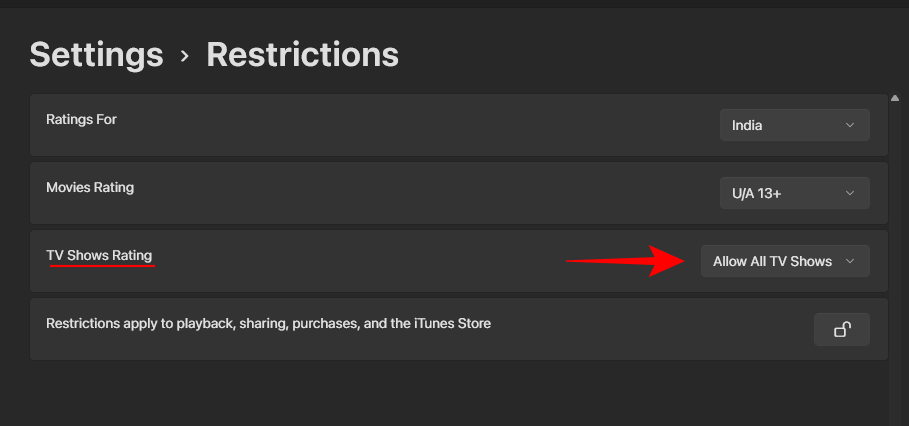 Restrict TV shows by clicking on the drop down menu next to TV Shows Rating
