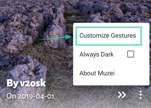 Step 1: Tap on the three-dot icon at the bottom of the Muzei app’s home screen and then select Customize Gestures.