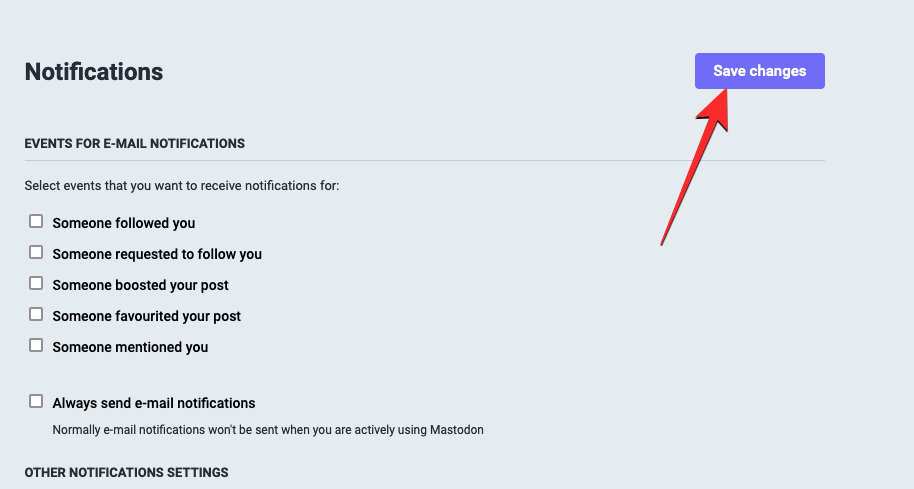Doing so will block any kind of alerts when a non-follower or someone you don’t follow favorites, replies or reblogs your Mastodon post. Additionally, if you don’t want to receive direct messages from people you don’t know on the platform, you can also block that by checking the Block direct messages from people you don’t follow box under “Other notifications settings” on this screen.