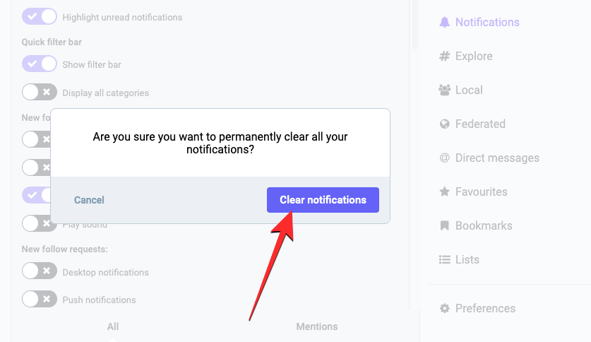 All your existing notifications will now disappear from the Notifications section on Mastodon.