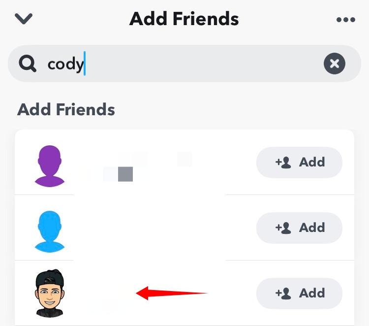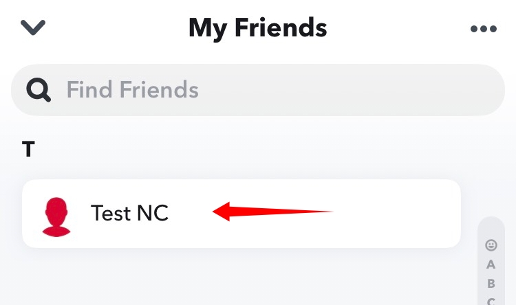 You will now get a list of all your friends currently added to Snapchat. Find the one you wish to block and tap on their name.