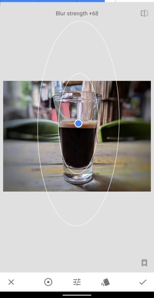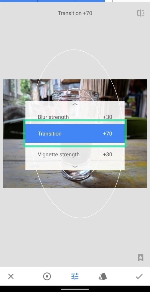 Step 8: Determine the shape of the blur by tapping the highlighted icon at the bottom. You can choose between linear or elliptical blur depending upon the subject in your picture or the shape of your subject.