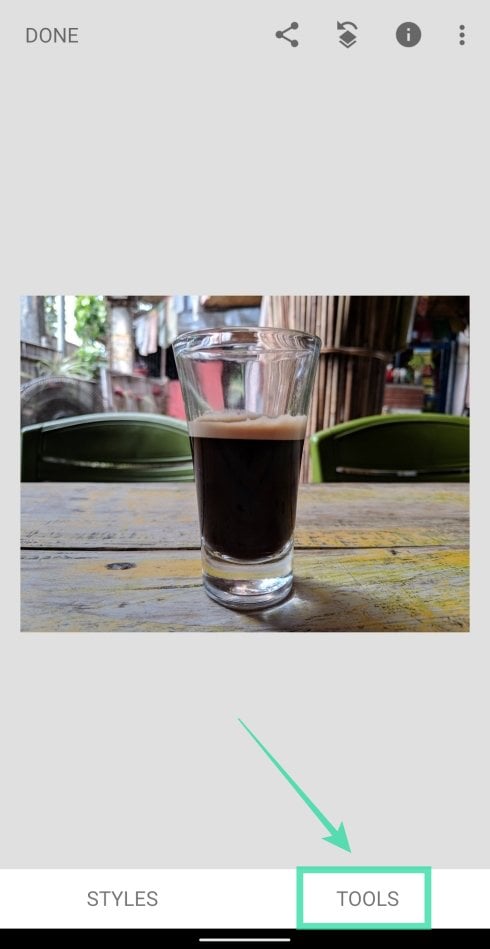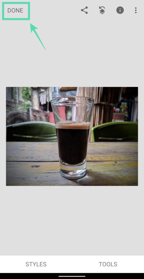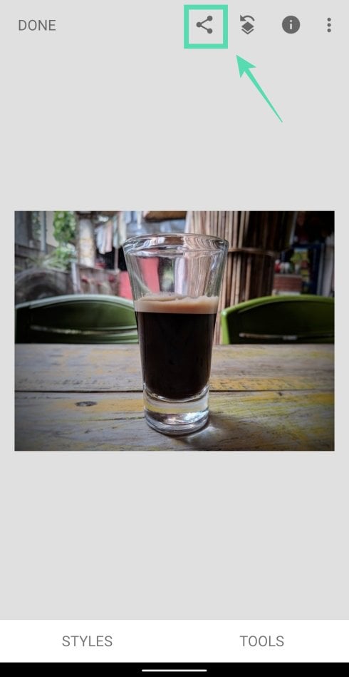 Step 15: To save the edited picture, tap on the Done. You can also share this picture directly from Snapseed by tapping on the Share icon at the top.