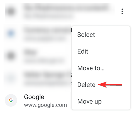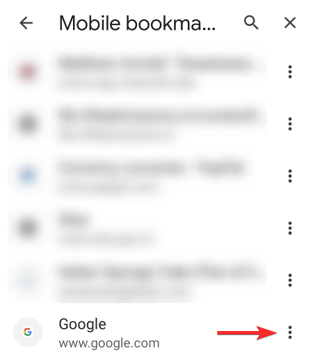 Once you find the bookmark on the list you need to tap the vertical ellipsis next to the bookmark.