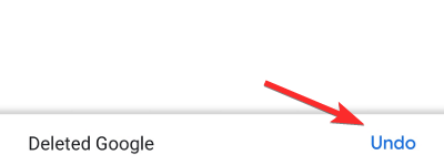 A prompt at the bottom will allow you to undo the bookmark removal. If you do not tap on the Undo button the prompt will vanish in a few seconds.