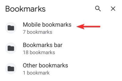 This will take you to the page with the list of bookmark folders. If you are using the same Google account on your Andriod device as well as your computer then you will see separate bookmark folders. To see the bookmarks you created from your Andriod device tap on “Mobile bookmarks”.