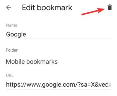 Tap on the icon to delete the bookmark.