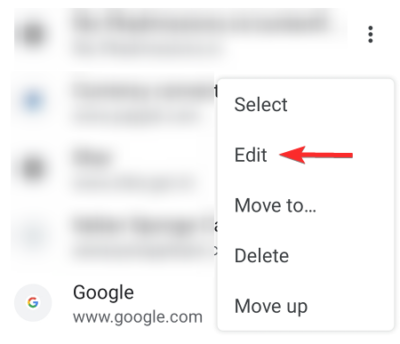 Once you find the bookmark on the list you need to tap the vertical ellipsis next to the bookmark.