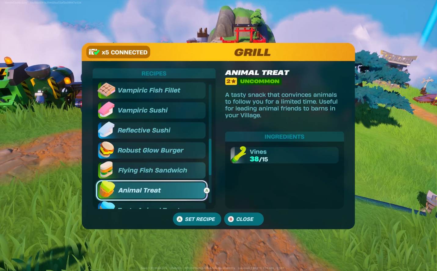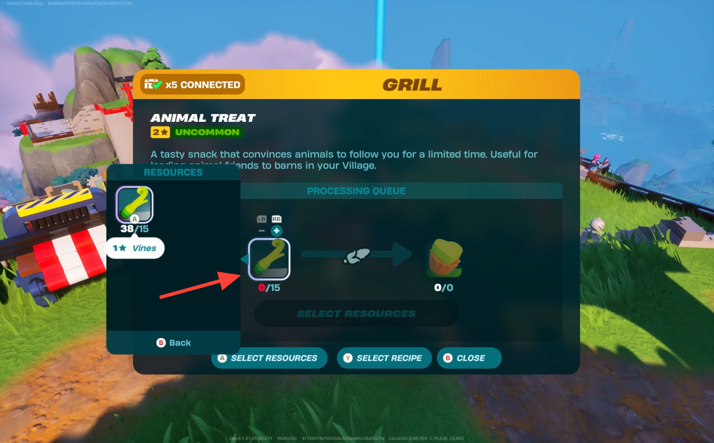 Each Animal Treat requires 15 Vines, so gather enough Vines before beginning.