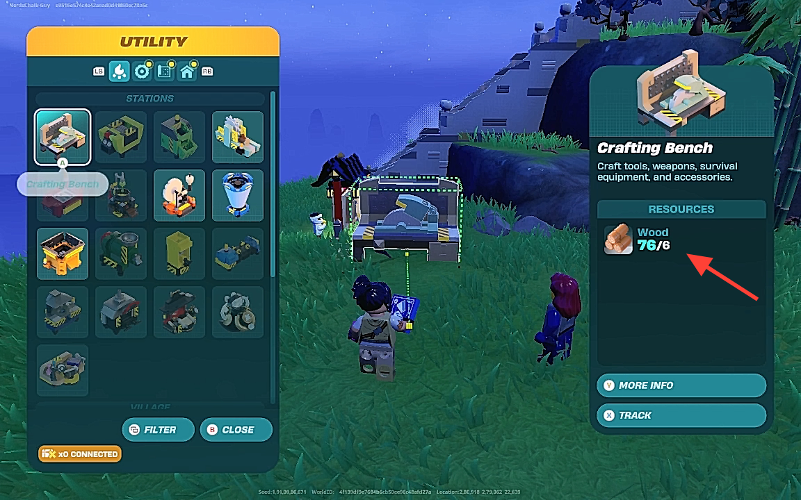 For the crafting bench, 6 wood is required to build it in the game. You can collect wood from trees and chests. They are also scattered on the map.
