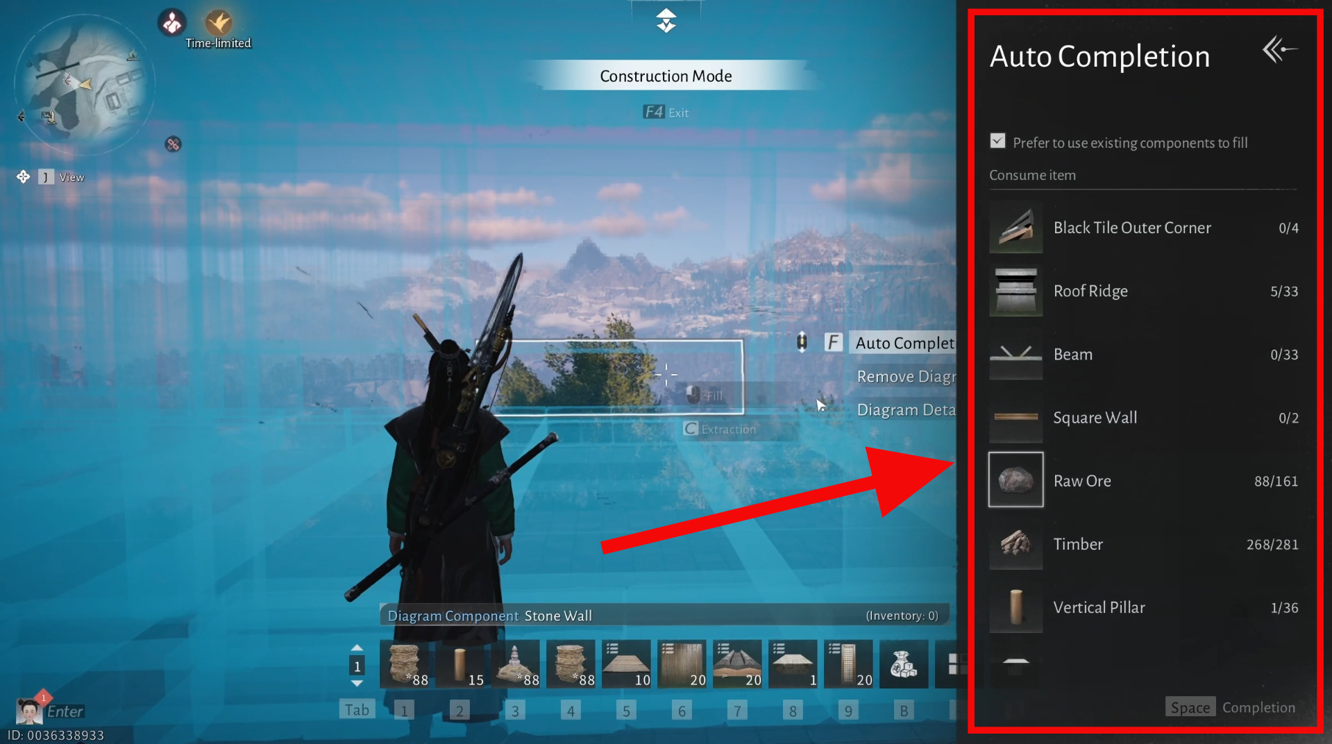 Press the "Auto Completion" option to instantly view all the materials required to finish the selected Diagram.